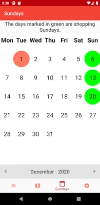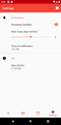Papildus veikalu atrašanai, esam integrējuši inovatīvu funkciju, kas mainīs jūsu iepirkšanās plānus: speciāls tirdzniecības svētdienu kalendārs. Vairs nekādu pārsteigumu par slēgtiem veikaliem! Lietotne ne tikai attēlo gaidāmās tirdzniecības svētdienas, bet arī ļauj iestatīt personalizētus paziņojumus. Jūs varat viegli konfigurēt, cik ilgi pirms svētdienas vēlaties saņemt atgādinājumu un precīzu paziņojuma laiku, nodrošinot, ka jūs vienmēr esat soli priekšā un varat efektīvi plānot savus iepirkšanās izbraucienus.