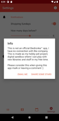Lietotne Biedra piedāvā Biedronka veikalu karti visā Polijā, strādājot bez interneta. Ietver iepirkšanās svētdienu kalendāru ar pielāgojamiem paziņojumiem. Atrod tuvākos veikalus vai meklē pēc adreses, nodrošinot ērtu navigāciju.