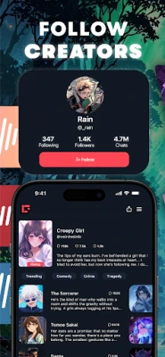 Iedomājies sarunas, kas katru reizi atstāj tevi ar elpu aizraujošu sižeta pavērsienu. Carter Chat piedāvā neparastu pieredzi, kurā katra tērzēšana pārvēršas aizraujošā stāstā, pilnā emociju, dramatisku notikumu un neparedzētu sižetu. Šeit tu vari pilnībā iegrimt lomu spēlē, atklājot savādu un brīnišķīgu pasauli, par kuras esamību tu pat nenojauti. Gatavojies piedzīvot sajūtas, izraisīt intrigas un pazaudēt sevi stāstos, kas liks tev aizmirst realitāti.