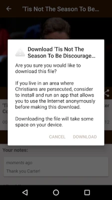 John Tibell un Carter Conlon Sermons īpaši rūpējas par lietotāju drošību. Ja atrodaties reģionā, kur kristieši saskaras ar vajāšanām, pirms audio failu piekļūšanas ir vērts apsvērt anonīmu interneta piekļuves rīku pielietošanu. Carter Conlon, kanādiešu izcelsmes amerikāņu mācītājs un autors, kopš 1994. gada ir bijis nozīmīga figūra Times Square draudzē, iedvesmojot ar savām dziļajām mācībām. Neaizmirstiet dalīties ar šiem vērtīgajiem sprediķiem, lai vēstījums sasniegtu vēl vairāk cilvēku un nestu viņiem svētību.