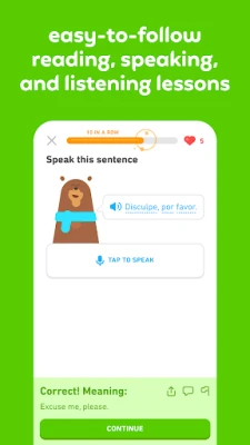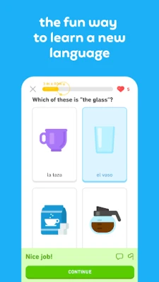 Mācies jaunu valodu ar Duolingo! Tā ir jautra, bezmaksas lietotne vairāk nekā 40 valodu apguvei ar ātrām, nelielām nodarbībām. Praktizē runāšanu, lasīšanu, klausīšanos un rakstīšanu, veidojot vārdu krājumu un uzlabojot gramatikas prasmes.
